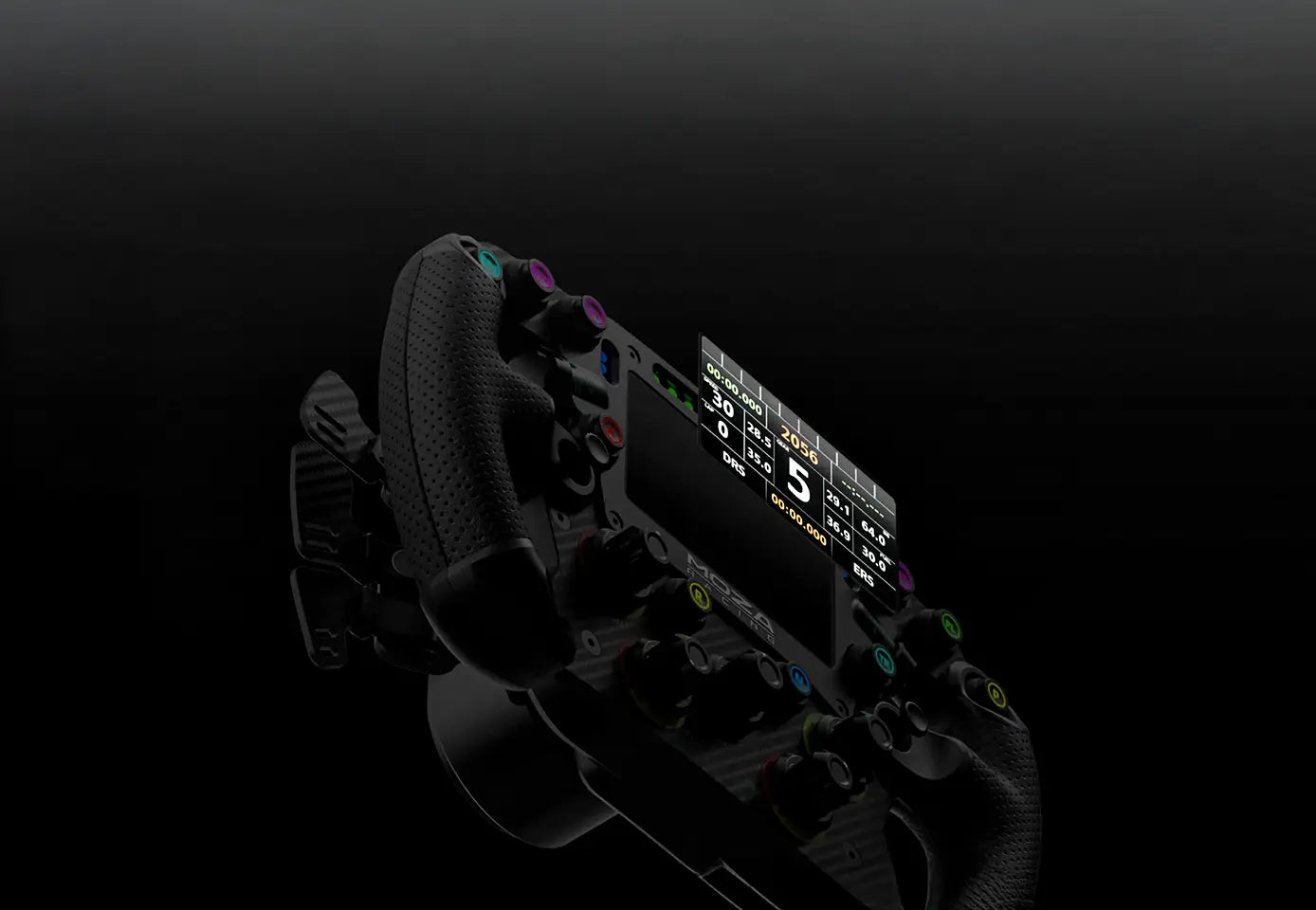Elevate your racing experience with the MOZA FSR2 Formula Wheel. This 280mm wheel boasts a vibrant 4.3-inch touchscreen, customizable UI, and precision controls, including a 6-paddle design and RGB signal lights. Built with a carbon fiber frame, aluminum quick release, and a high-performance processor, it offers seamless integration with MOZA and third-party racing bases. Perfect for competitive sim racers seeking unmatched control and immersion.