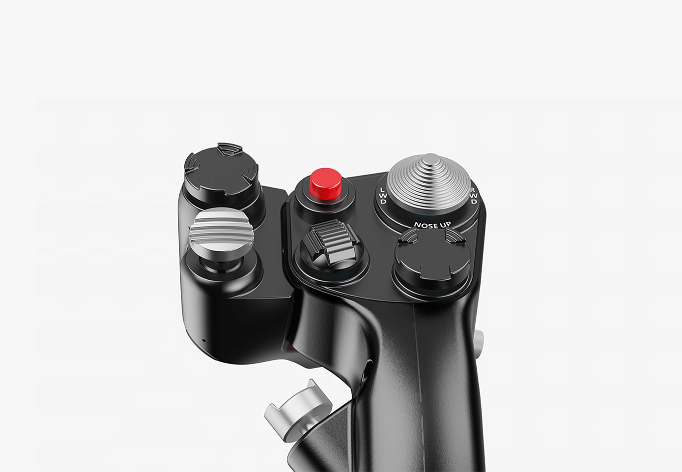 The MOZA MH16 Flightstick, crafted from aviation-grade aluminum alloy with automotive-grade paint, offers exceptional durability and a classic fighter aircraft design. It features detachable modular components with pogo pin connections for easy installation and stable operation, providing additional switches without messy wiring. With 27 input signals and an 8-way ALPS thumbstick, the MH16 allows extensive customization through the MOZA Cockpit Control Software. Effortless plug-and-play compatibility ensures it fits most bases seamlessly, delivering a realistic and reliable flight experience.