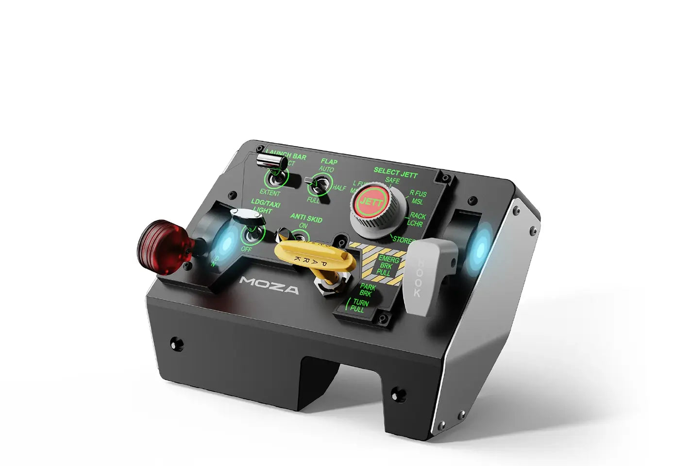 The MOZA MTLP Panel is a high-fidelity multi-function landing panel, designed for precision control and immersive flight simulation. Modeled after the F/A-18 landing panel, it features an intuitive 25-switch signal layout for seamless aircraft operation. The authentic parking brake lever replicates real fighter jet mechanics, while high-precision Hall sensors ensure smooth, long-lasting performance. With programmable panel lights, telemetry-driven indicators, and modular compatibility with the MOZA MTP Throttle Panel, the MTLP delivers unmatched realism, durability, and customizability for professional-grade flight simulation.