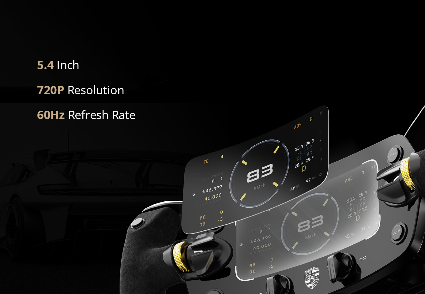 The MOZA Porsche Mission R Steering Wheel is an officially licensed replica crafted with Porsche’s original CAD data. Featuring a 5.4-inch flexible OLED display, CNC-machined aluminum frame, suede-like grips, and dual-clutch magnetic paddles, it delivers the ultimate balance of authenticity, performance, and comfort for professional sim racing.