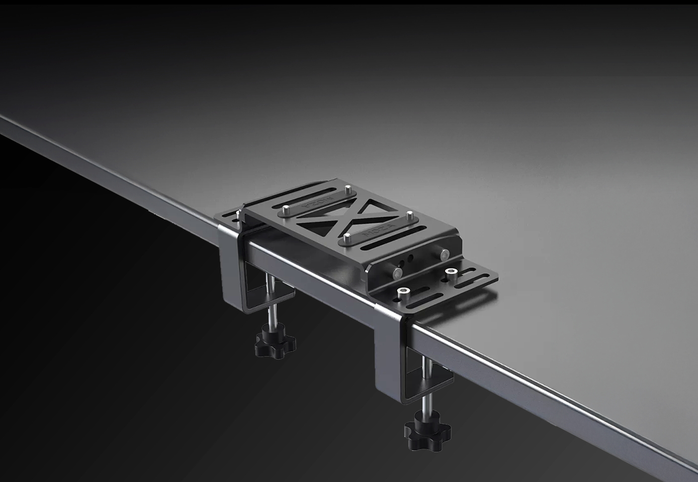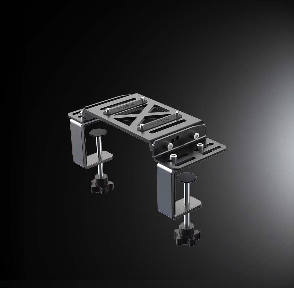Crafted from high-strength CNC-machined steel, this desk clamp mount delivers exceptional rigidity and durability. The precision multi-angle adjustment ensures a stable and comfortable driving position, while the space-saving clamp design securely fits a wide range of desk thicknesses. With selected components also supporting aluminum profile rig mounting, it offers a versatile installation solution for MOZA R5, R9, and R12 direct drive wheel bases.