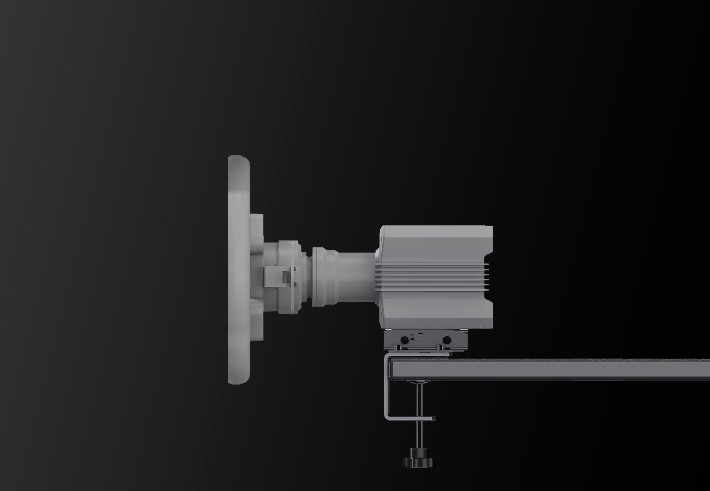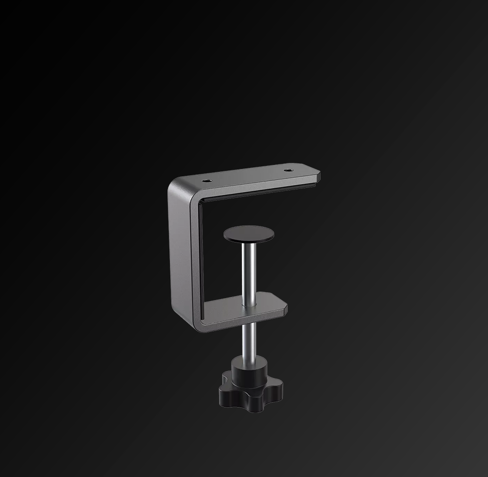 Crafted from high-strength CNC-machined steel, this desk clamp mount delivers exceptional rigidity and durability. The precision multi-angle adjustment ensures a stable and comfortable driving position, while the space-saving clamp design securely fits a wide range of desk thicknesses. With selected components also supporting aluminum profile rig mounting, it offers a versatile installation solution for MOZA R5, R9, and R12 direct drive wheel bases.