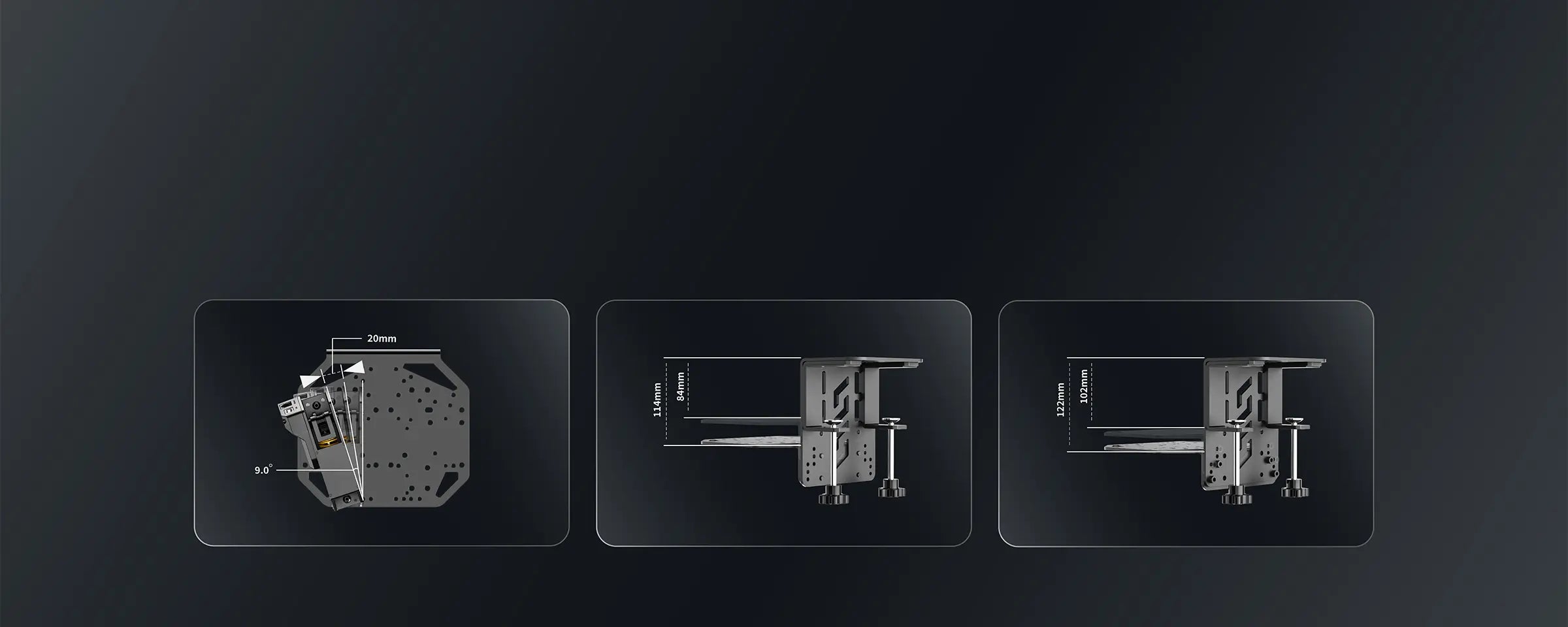 Yes. The plate height can be adjusted between 84mm and 122mm. The dedicated handbrake mount also supports three angle settings (in 9° increments), allowing you to fine-tune your driving ergonomics.